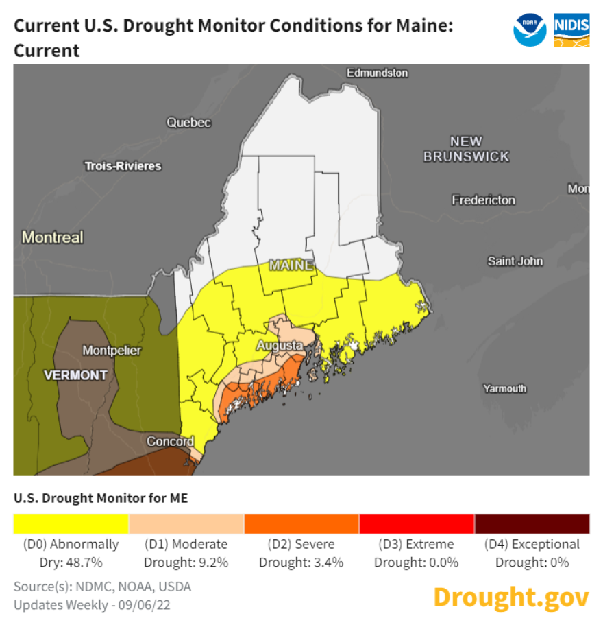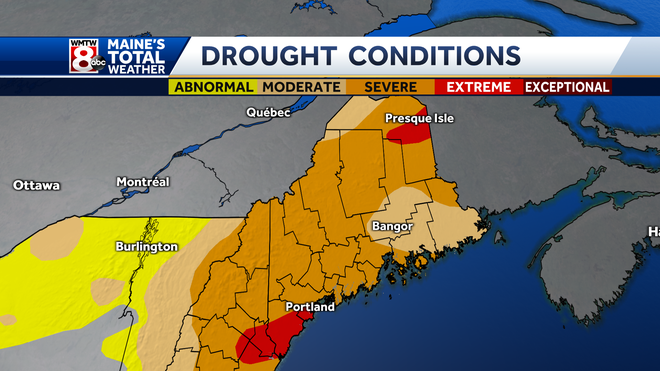Much of coastal Maine is now in severe drought